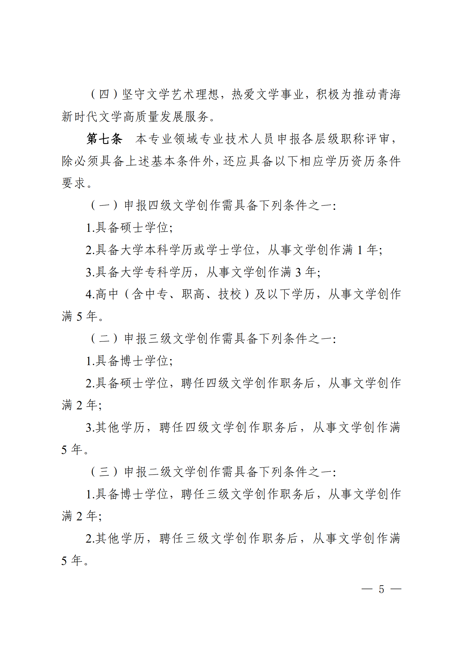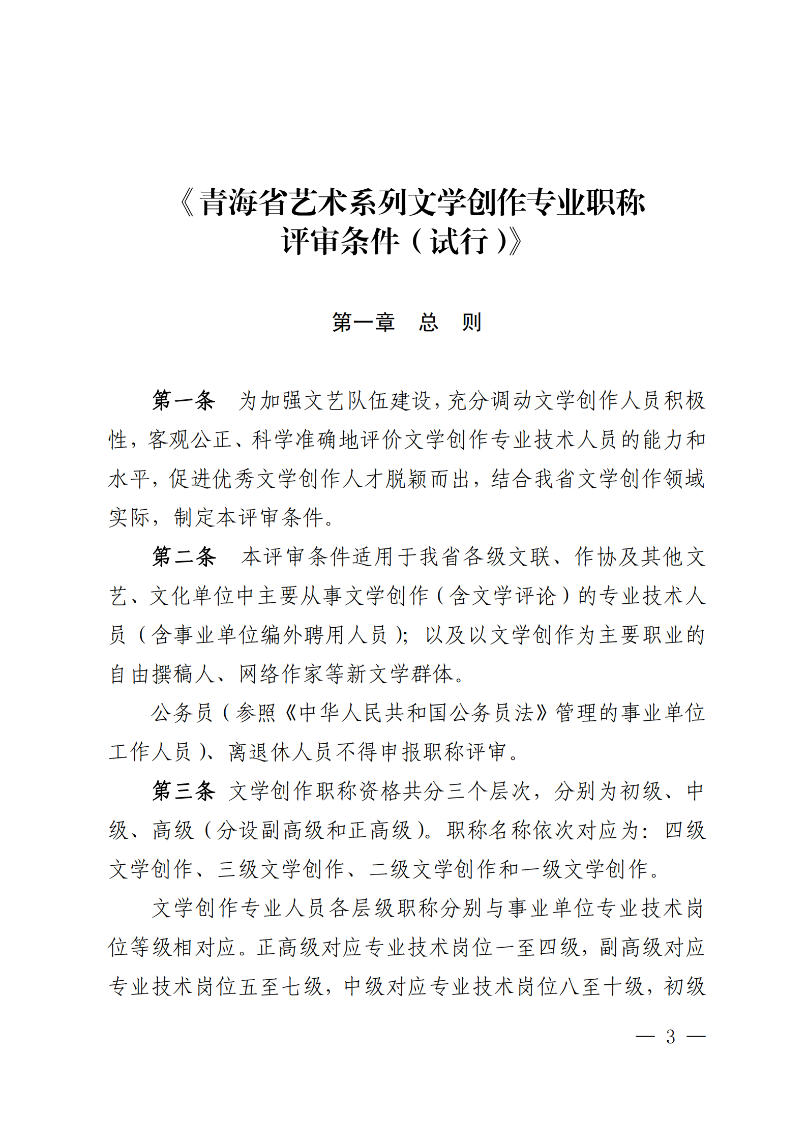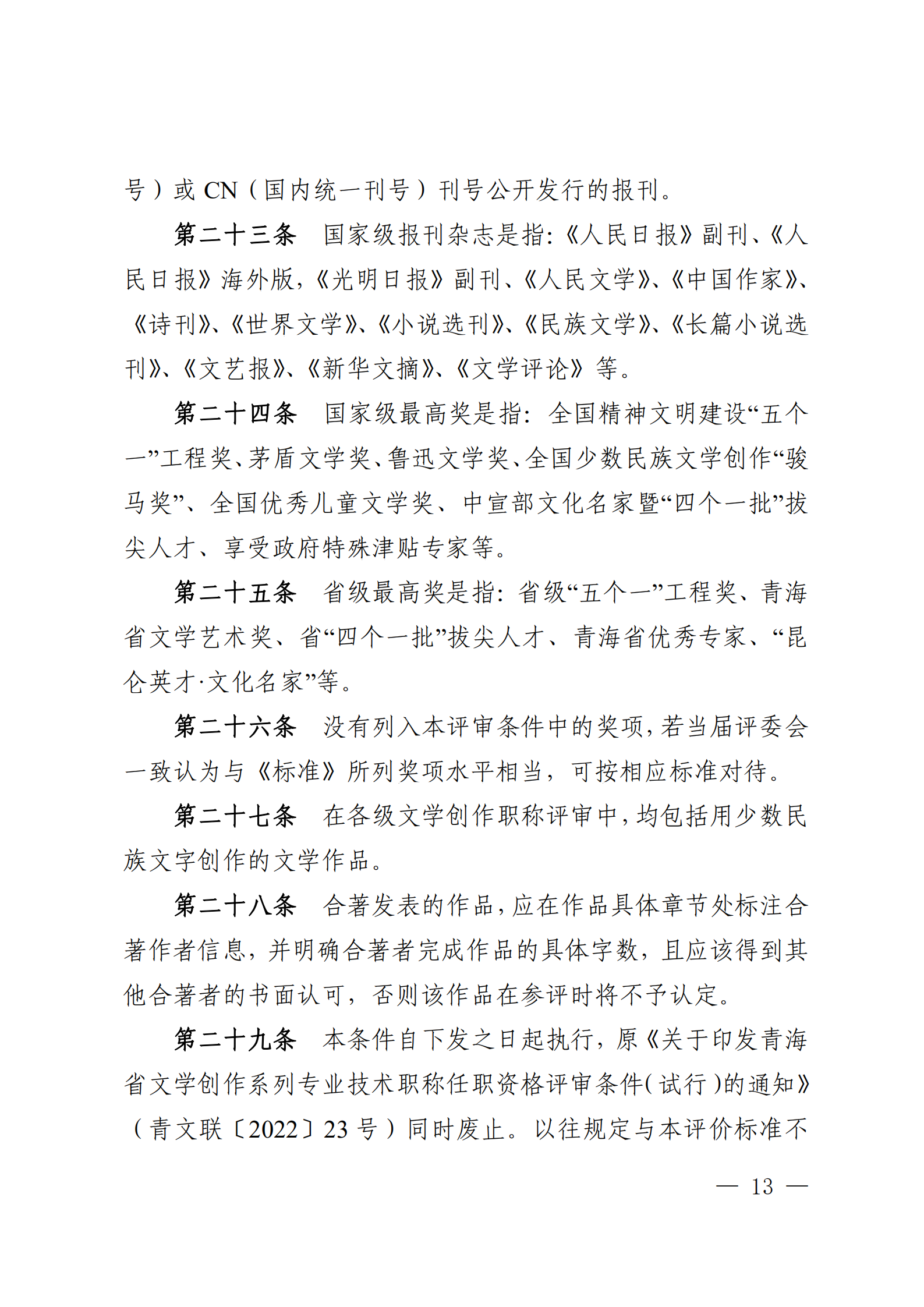 《青海省藝術系列文學創作專業職稱評審條件(試行)》