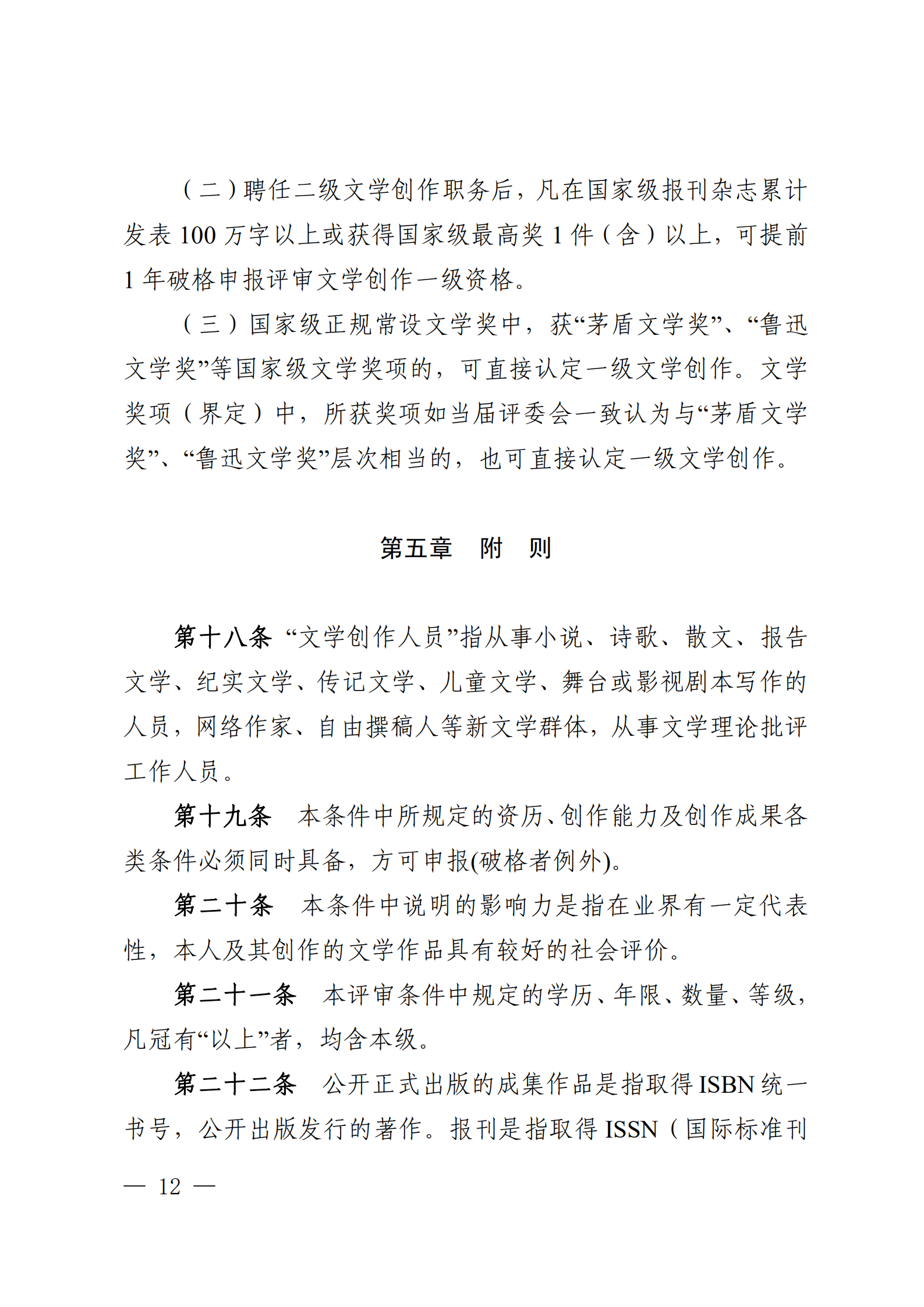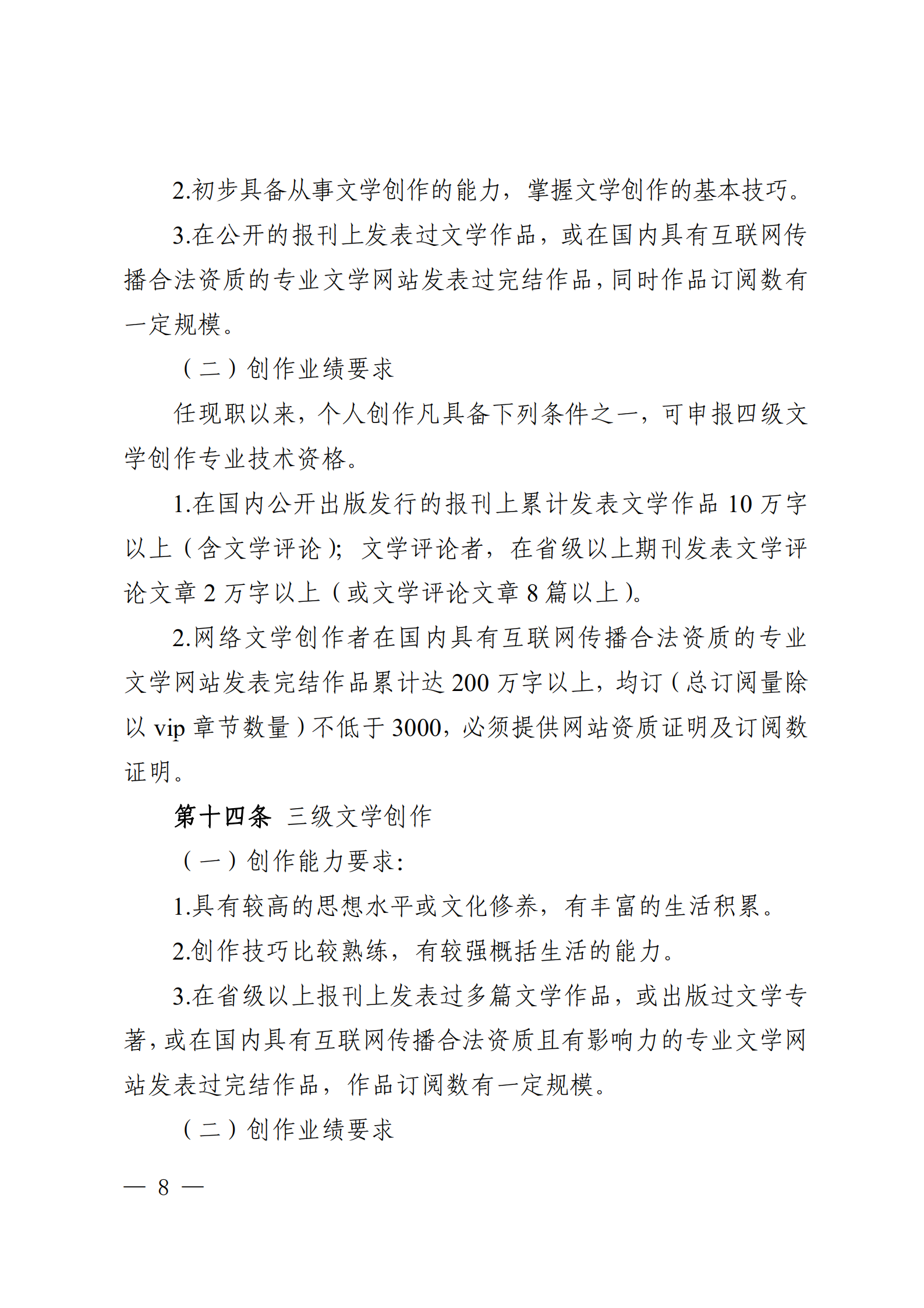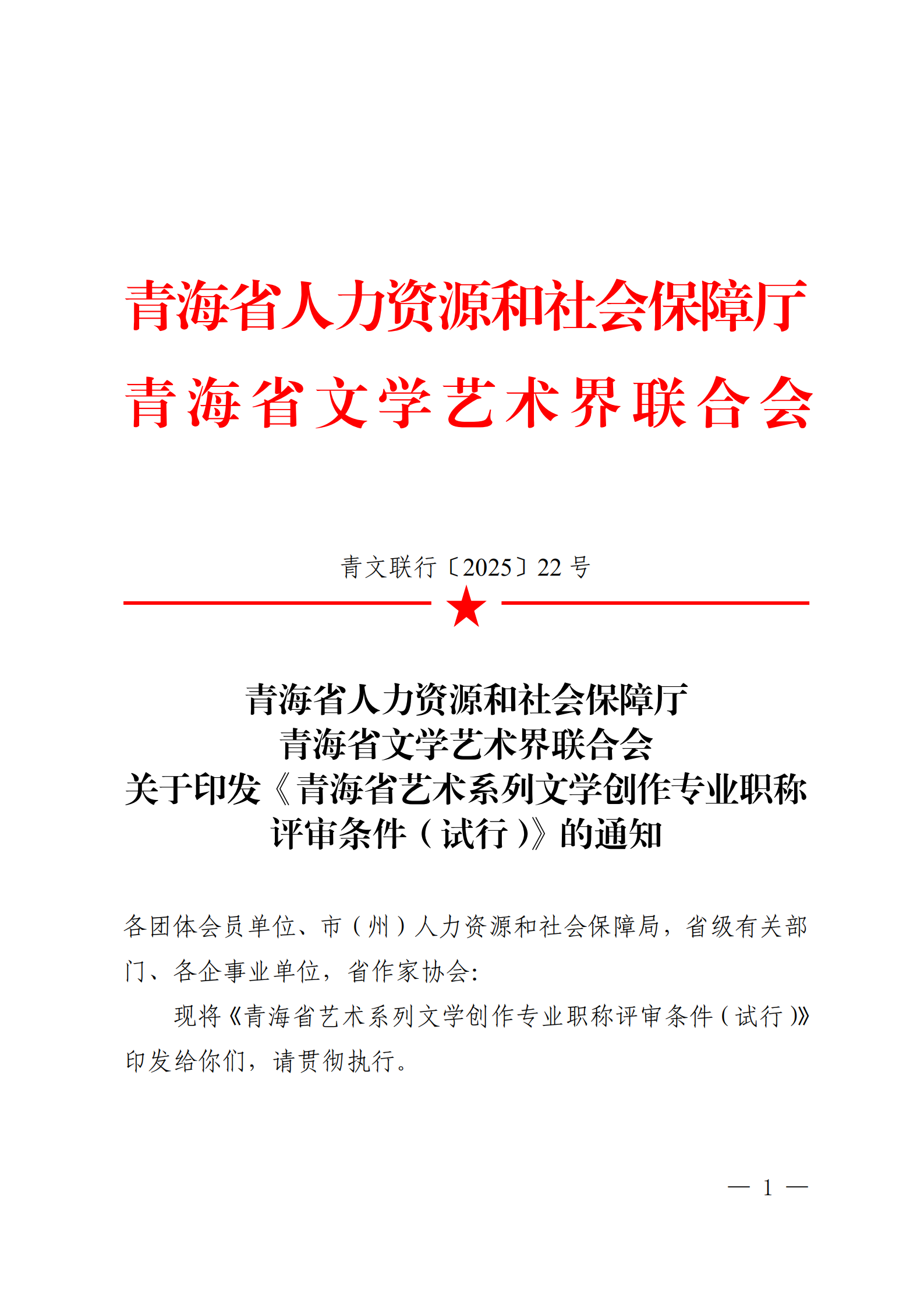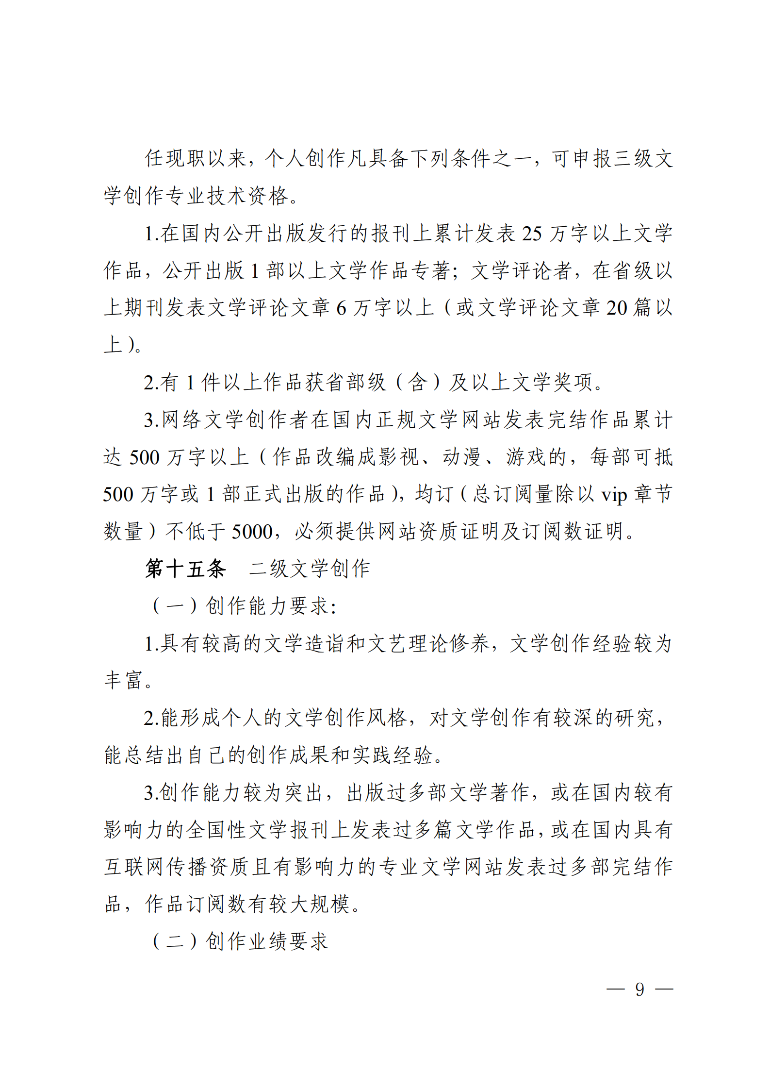 《青海省藝術系列文學創作專業職稱評審條件(試行)》