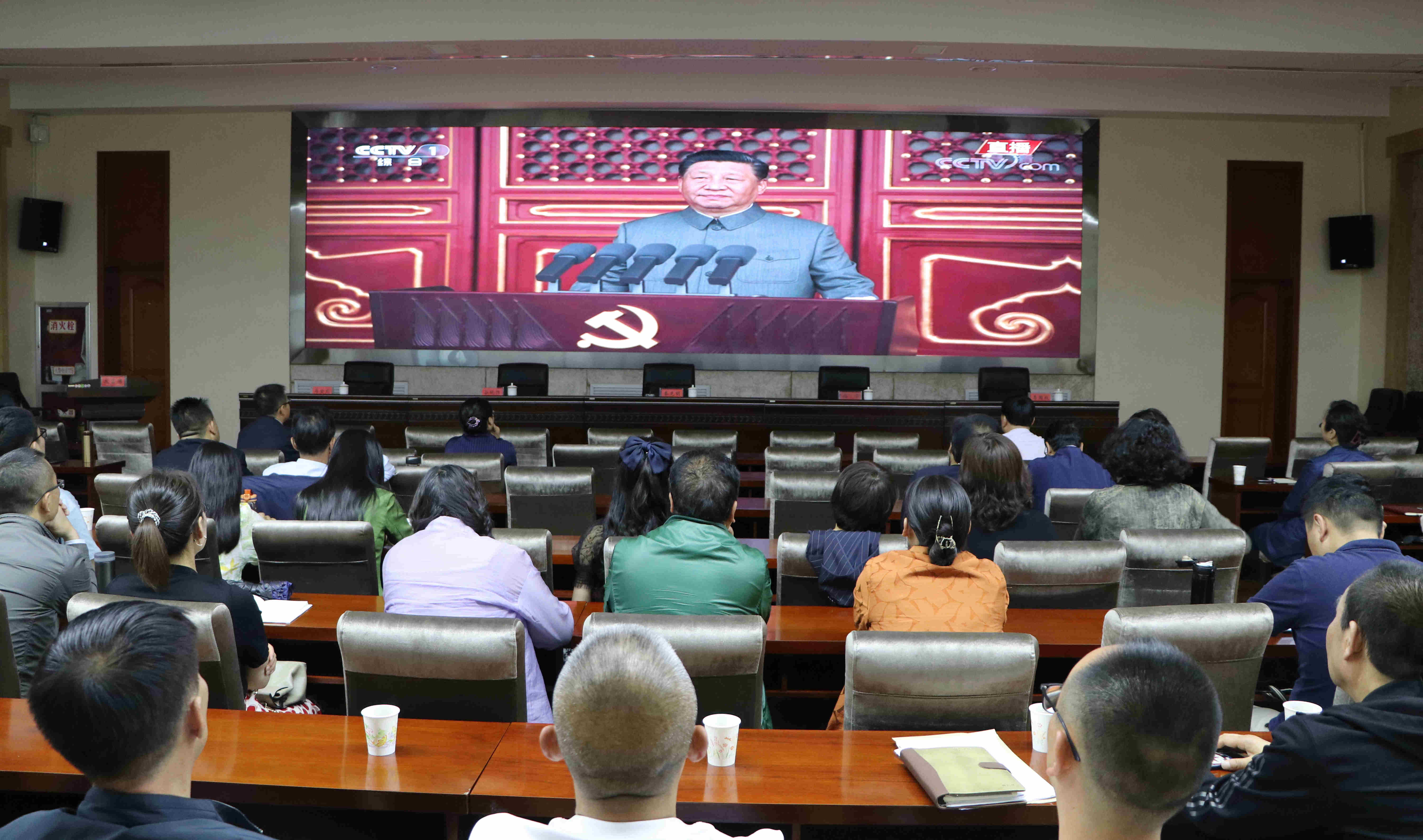 ?7月1日,省文聯全體干部職工早早端坐在青海美術館四樓多功能廳內,集中收聽收看慶祝中國共產黨成立100周年大會,認真聆聽習總書記重要講話。會場眾人激動之情溢于言表,心情激蕩,通過學習研討、轉發直播鏈接等形式,表達對黨一百周年華誕的深情祝福。