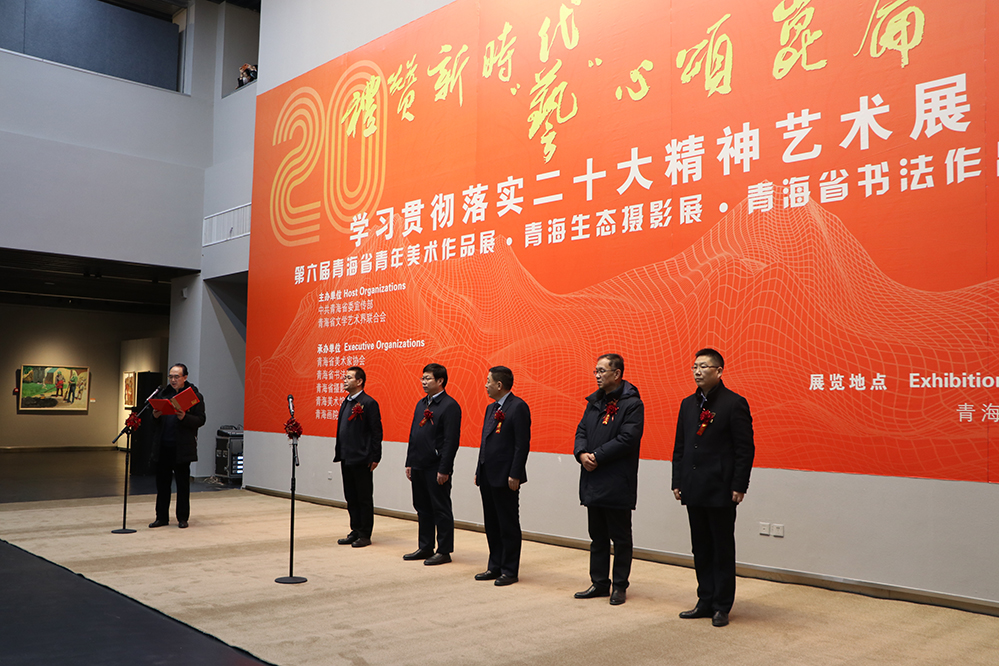 “禮贊新時代 ‘藝’心頌昆侖”學習貫徹黨的二十大精神藝術展,于1月14日在青海美術館開幕。此次展覽由省委宣傳部、省文學藝術界聯合會共同主辦,省美術家協會、省書法家協會、省攝影家協會、青海美術館、青海畫院聯合承辦。省委宣傳部副部長李現曾出席開幕式,省文聯黨組成員、副主席秦光明致辭并宣布開幕,省文聯黨組成員、副主席李國權主持開幕式。