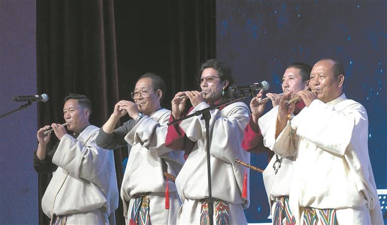 藏族傳統(tǒng)古器樂在舞臺上煥發(fā)生機。本版圖片由格薩爾樂團提供