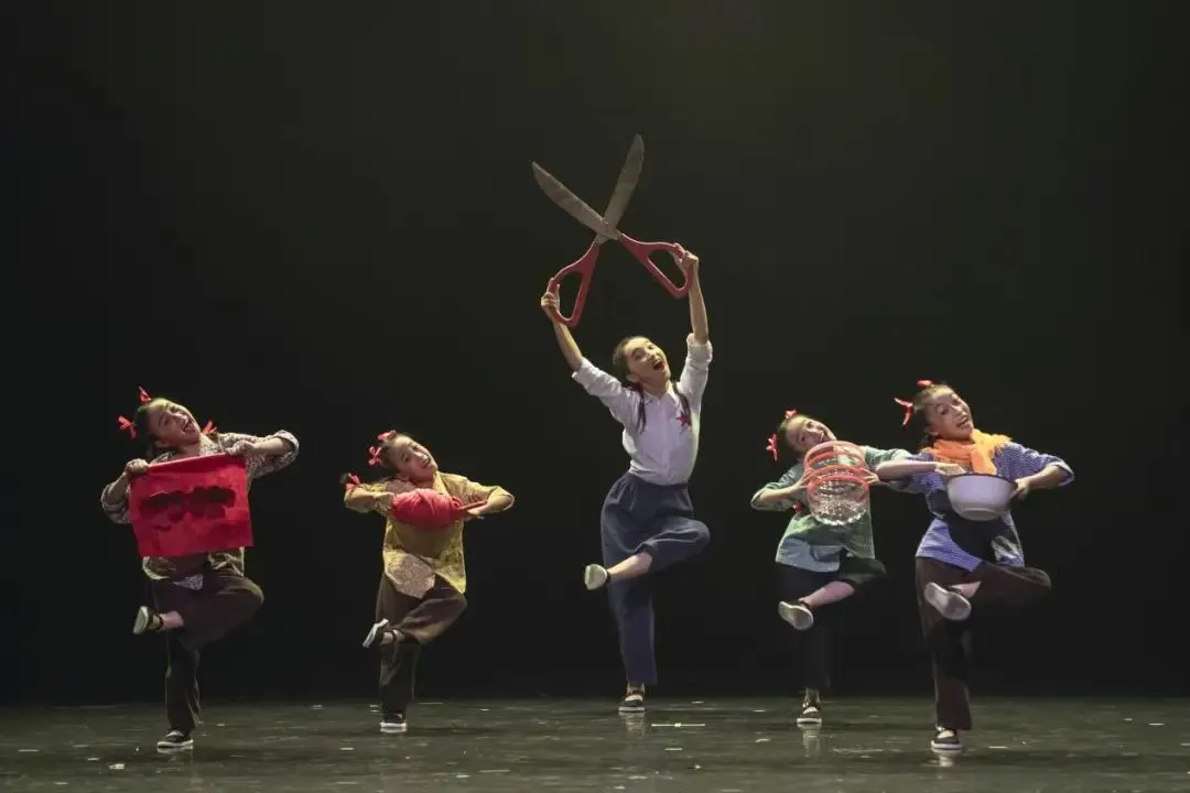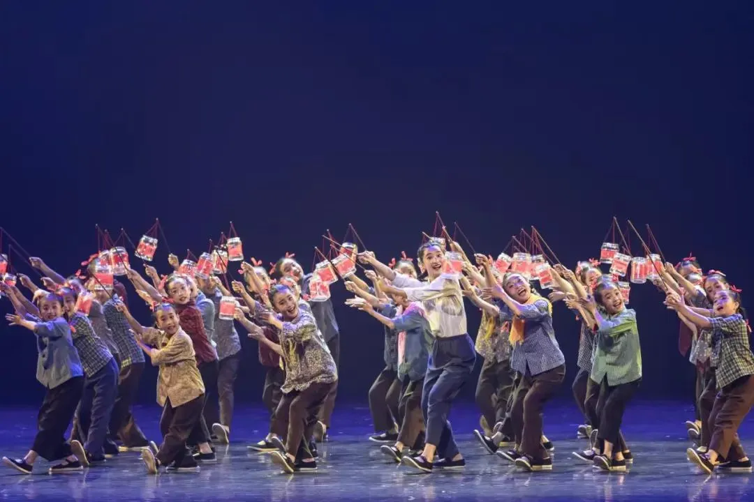 《河湟謠》以孩童的視角為鏡,將河湟谷地的生活肌理融入舞步,用質(zhì)樸的動(dòng)作語(yǔ)言復(fù)刻童年場(chǎng)景。打沙包時(shí)的雀躍、扔骨節(jié)時(shí)的專注、踢腳游戲中的憨態(tài)……這些源自生活的片段被提煉為舞蹈語(yǔ)匯,傳遞出無(wú)拘無(wú)束的快樂(lè)。舞臺(tái)上,姐妹們圍坐制作燈籠的場(chǎng)景尤為動(dòng)人,指尖捻動(dòng)的燈穗、燈下流轉(zhuǎn)的笑語(yǔ),讓河湟?guī)状说纳钣∮浽诠庥芭c舞步間緩緩鋪展。