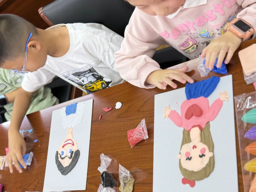 一場充滿創意的“我的情緒表情”輕黏土手工制作將活動氛圍提升到新高度。孩子們利用學到的安全和心理知識,充分發揮想象力,用五彩斑斕的輕黏土塑造出各種表達心理情緒的表情作品。有和爸爸媽媽逛公園的“幸福表情”,有足球比賽失敗后的“憤怒表情”,有自己感覺最漂亮時的“開心表情”,還有想象中甜品怪的“搞怪表情”……老師引導孩子們分享自己在遇到不同情緒時的感受和應對方法,幫助他們學會自我情緒管理,做情緒的小主人。