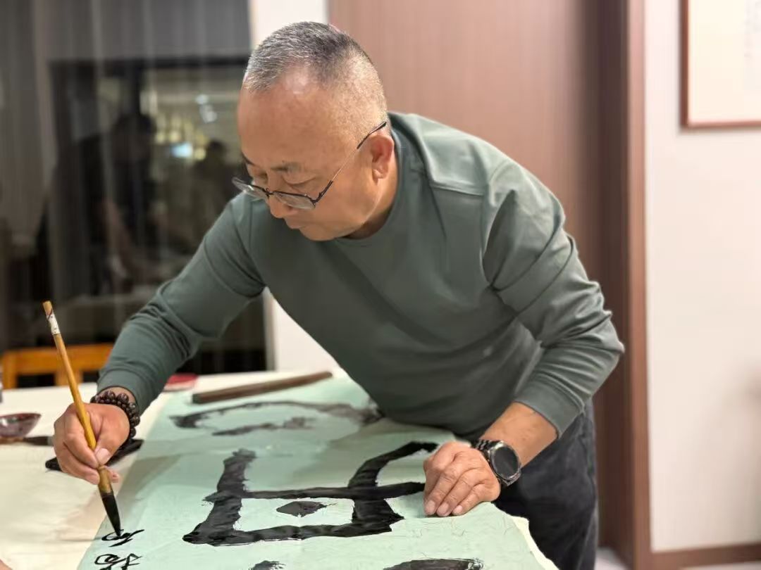 深入駝場(chǎng)腹地,采風(fēng)團(tuán)在田間地頭、窯洞周邊與駝群活動(dòng)區(qū)開啟自主創(chuàng)作。藝術(shù)家們或立或蹲或伏,以筆為刃、以墨為魂:有人以粗糲筆觸勾勒窯洞滄桑肌理,還原先輩“住窯洞、啃干饃”的艱苦歲月;有人用明快色彩描繪駝群漫步、綠植點(diǎn)綴的新貌,展現(xiàn)紅色土地振興圖景;更有書法家揮毫潑墨,讓“兩路”精神經(jīng)典語錄躍然紙上。創(chuàng)作間隙,大家交流靈感,力求讓作品兼具“歷史縱深感”與“時(shí)代鮮活性”。
