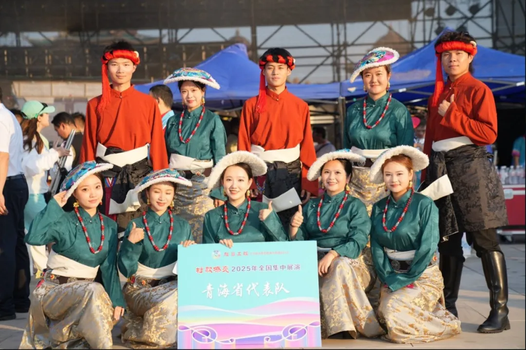 圖為“村歌嘹亮”2025年全國集中展演開幕式現場青海代表隊合影。鄂爾多斯市融媒體中心供圖。